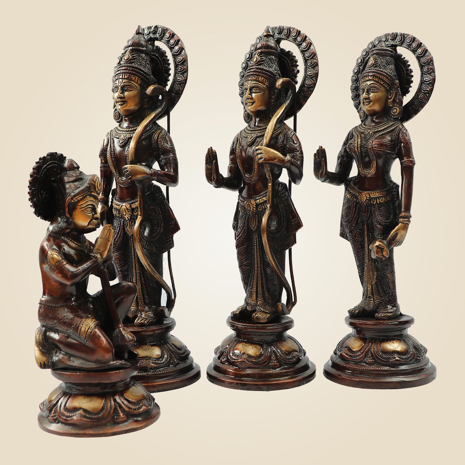 Antique Polish Brass Ram Darbar Idol Set | Rama Sita Lakshman Hanuman Murti 12.5" for Temple & Home Decor