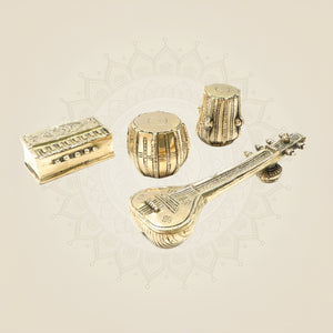 2.75" Brass Musical Instrument Set – Handcrafted Tabla, Veena & Harmonium