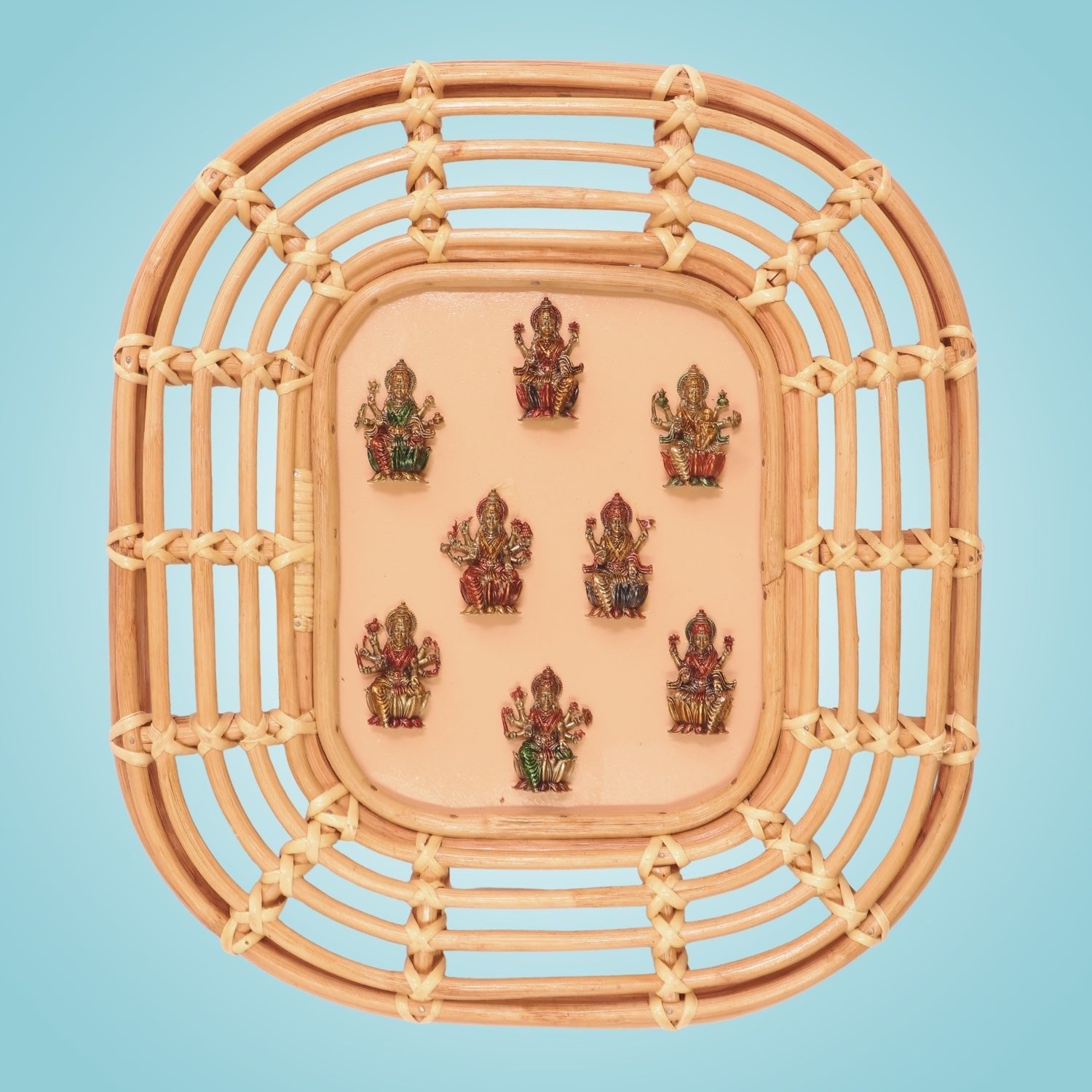 Ashta Lakshmi Brass Wall Hanging • Bamboo Frame Spiritual Décor -19"