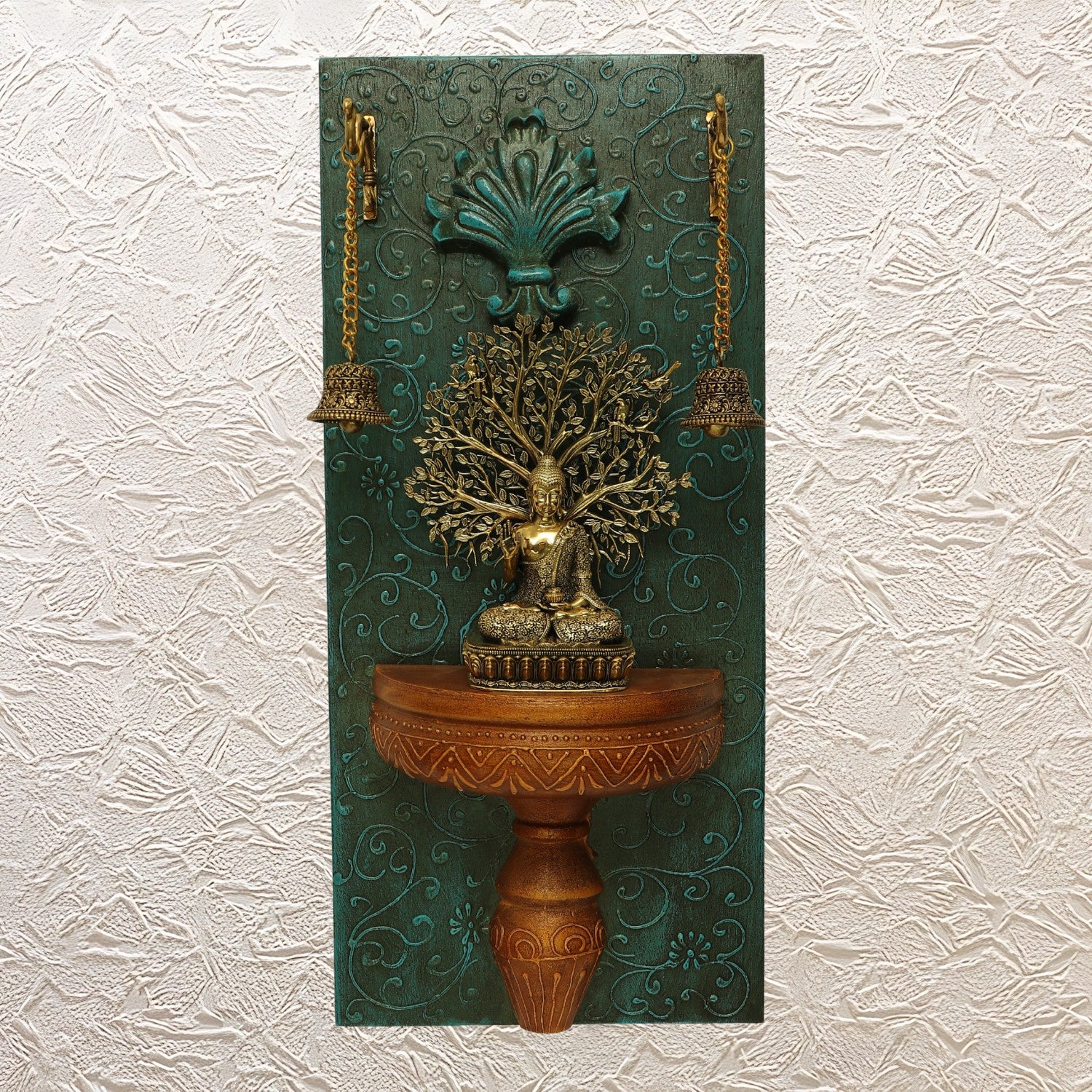 Lord Buddha blesses his followers with peace and calmness in their lives. Bringing this wall frame home featuring a brass Buddha Idol set on the beautifully handmade wooden wall frame with the bells makes it a spiritual yet elegant piece for any home. Furthermore, it is ideal for various spaces, including yoga rooms, meditation rooms, living rooms, the entrance of the house, and offices as well.