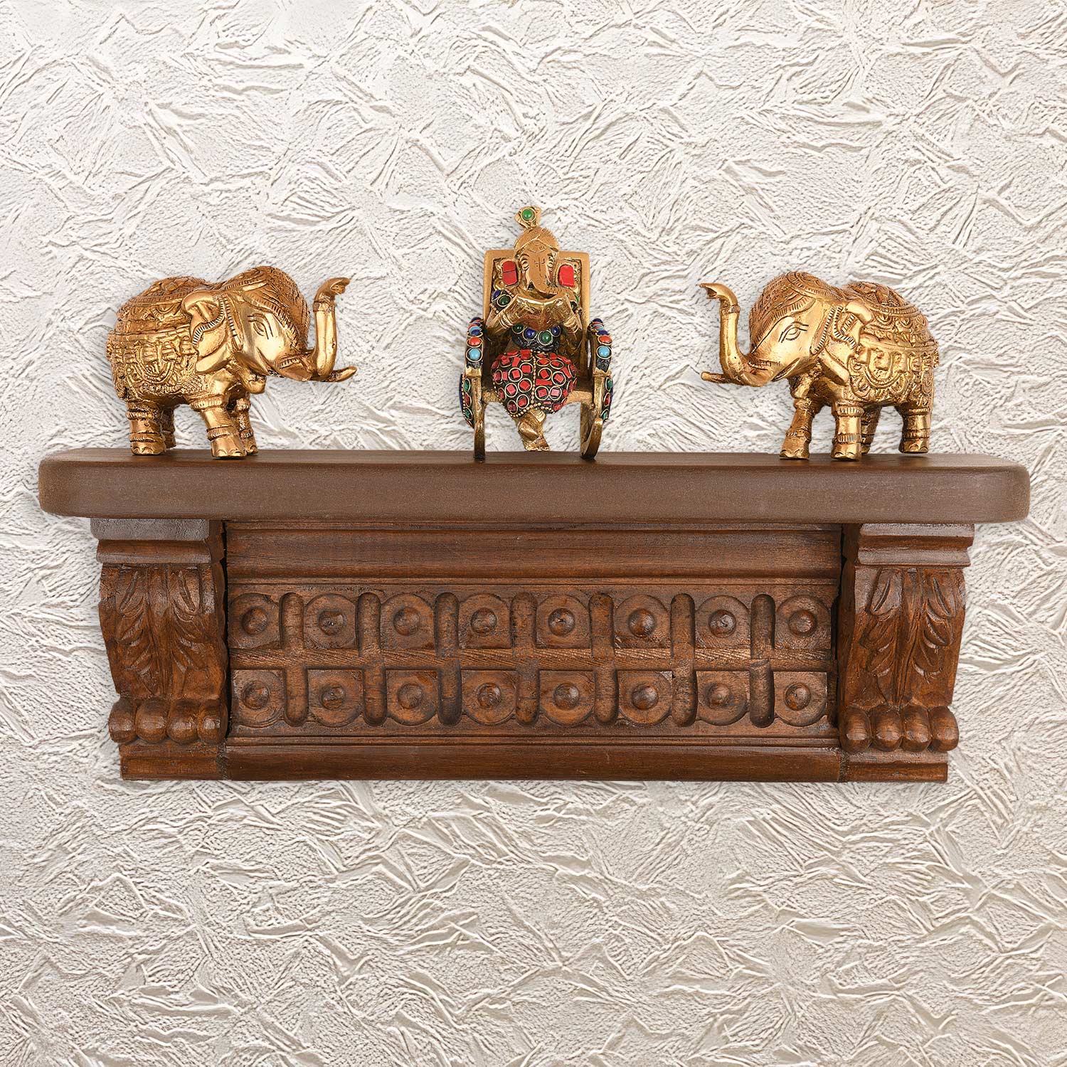 Brass Elephant and Ganesha Wall Shelf 6x17"– Perfect for Home Décor & Blessings
