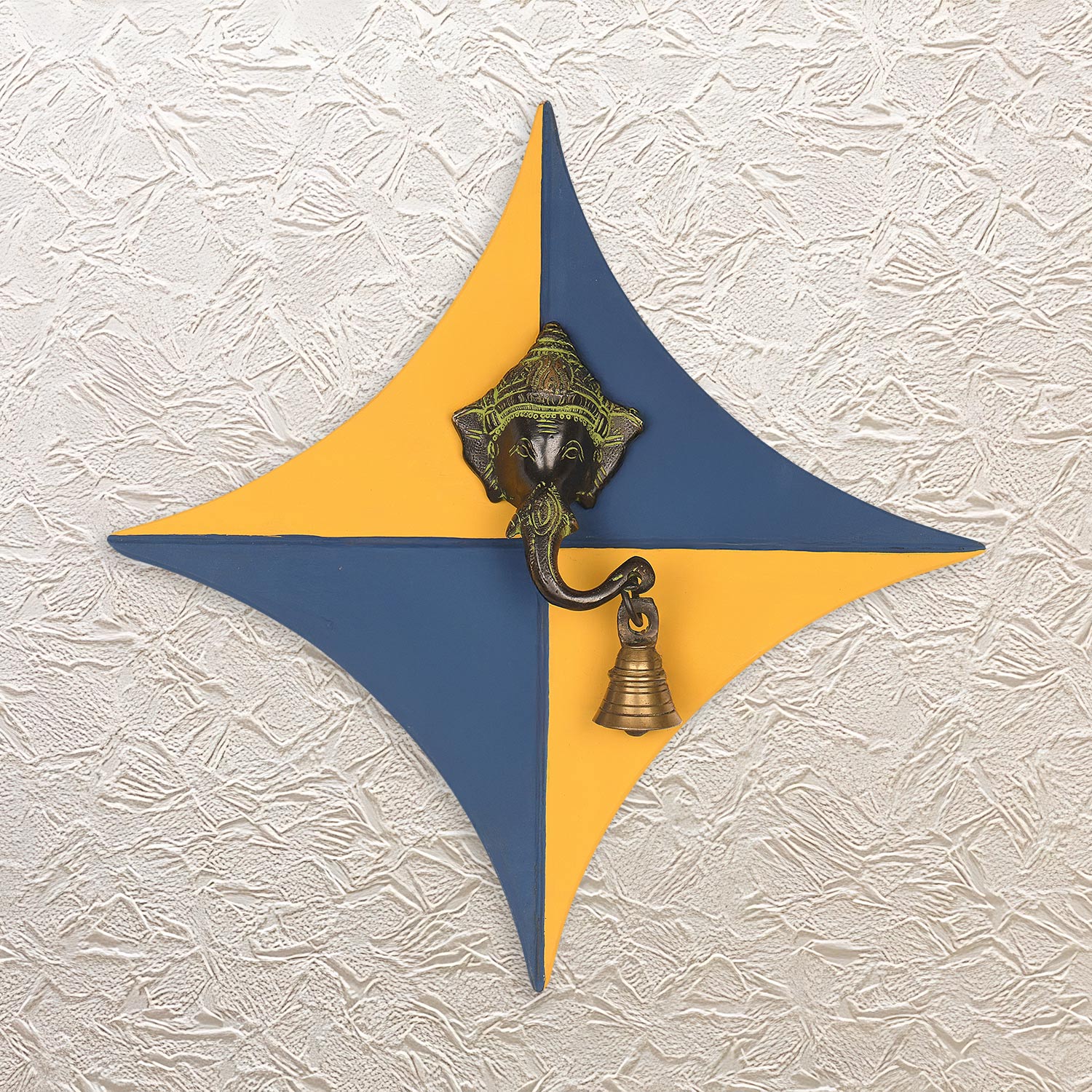 Bring abundance and good luck to your life and home with the wooden wall frame featuring the face of Lord Ganesha with a bell accent. The wooden frame is made in a diamond shape using two colours, yellow and blue. Furthermore, this wall frame is also suitable for use in the home, but also in offices and other desired spaces. Measuring 13 inches, this wooden frame will also make an excellent gift option for friends and family. To elevate the look of your house, hang this wall frame at the entrance of your home, in the living room, in your home temple, or even in the meditation space. Whether you want to use it for your home or as a gift for friends and family, it is an excellent choice.