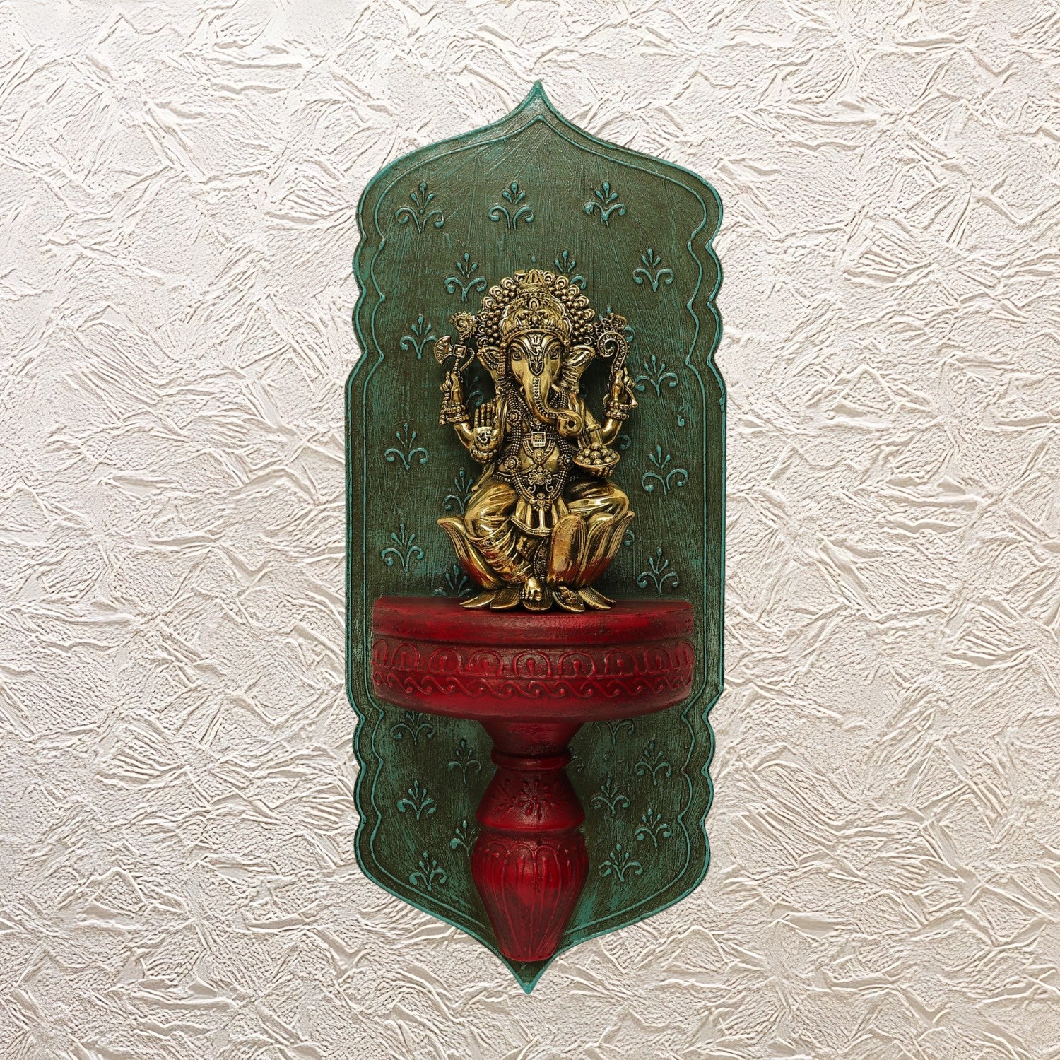 Brass Ganesha Idol with Graceful Wood-crafted Stand- 17"