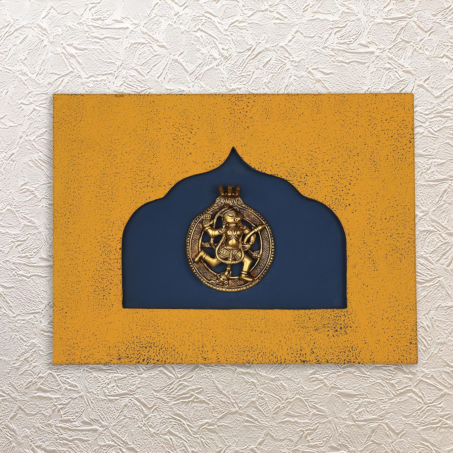 Celebrate the devotion, strength, and divine power with the brass Hanuman wooden wall frame. Measuring 12 inches, this is the most spiritual and powerful decor plate one can bring home. As it features brass-made Hanuman Ji, you will feel all the positive and good energies coming to your space by using this wall frame at your home or office.