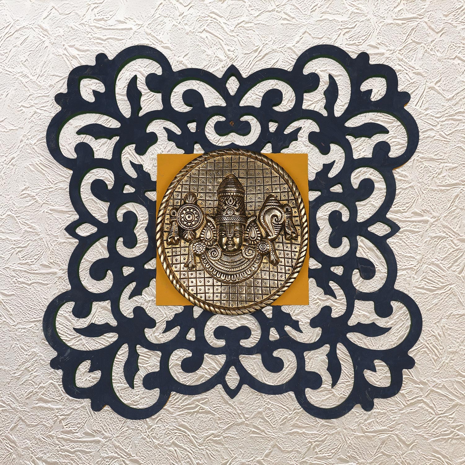 Brass Lord Venkateswara Wall Frame - 16" Handcrafted Designer Wooden Decor Panel