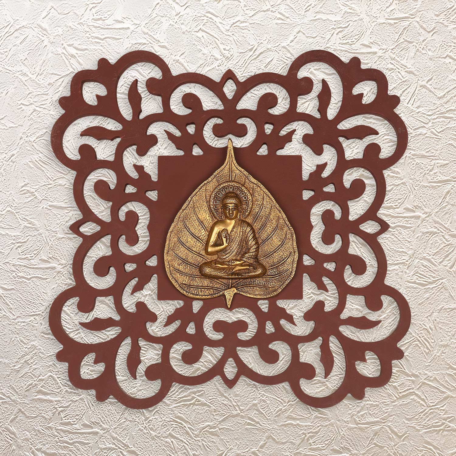 Add a timeless and spiritual art piece in the form of a 16-inch Buddha on Leaf with a Decorative Wooden Wall Frame. In this wall frame, you will see that Buddha is seated on a leaf. The wooden frame is dark brown, which gives a beautiful and eye-catching vibe, making it a perfect decor piece for the sacred section of the home, meditation room, and even the living room.