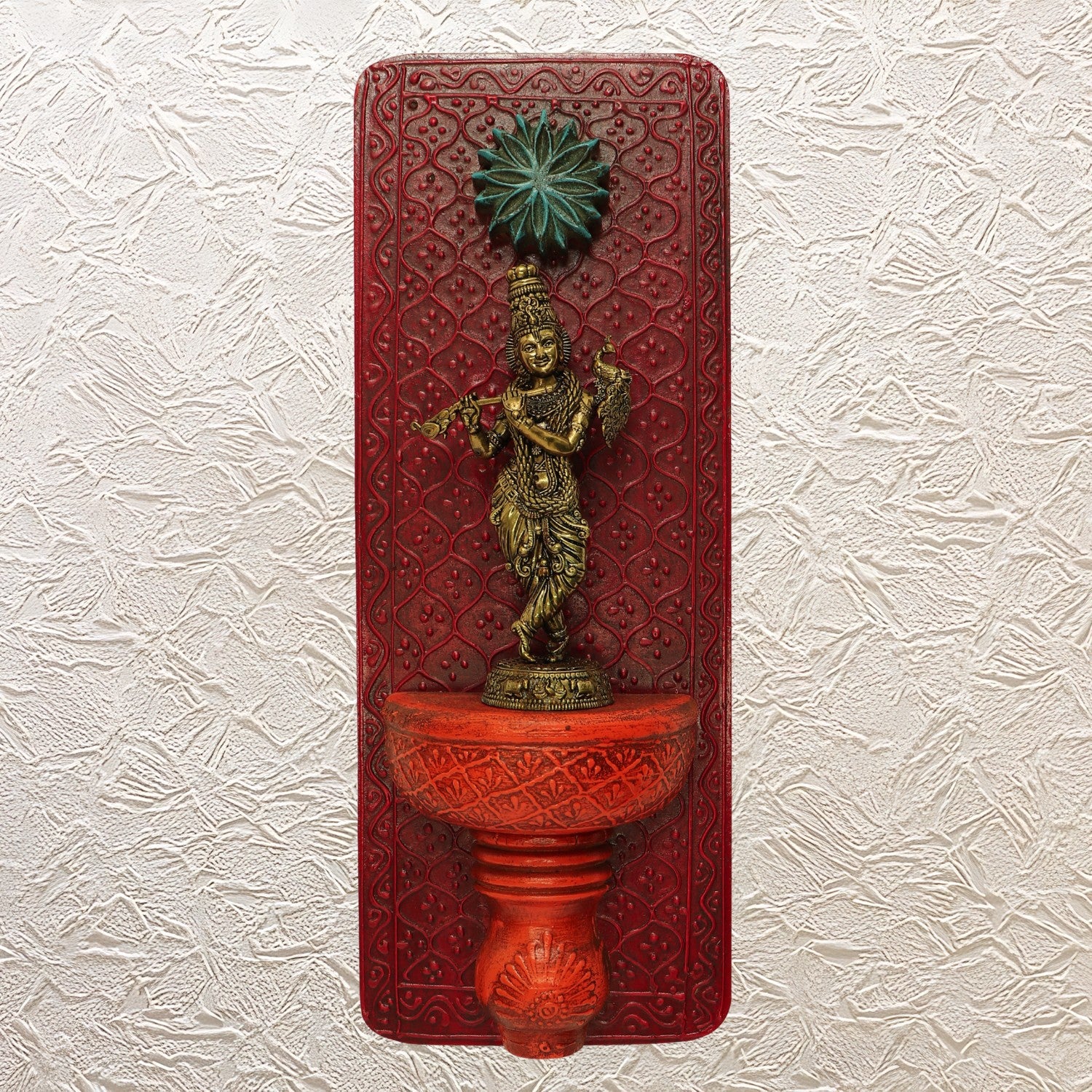 Handcrafted Brass Krishna Idol in Wooden Wall Frame 16"– Spiritual Decor