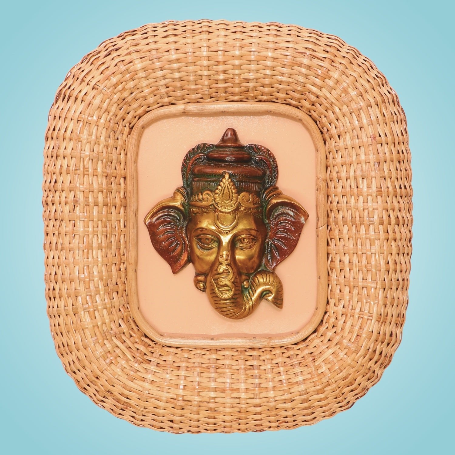 Handcrafted Ganesha Wall Face Mask 19" - Cane Wall Frame Home Décor