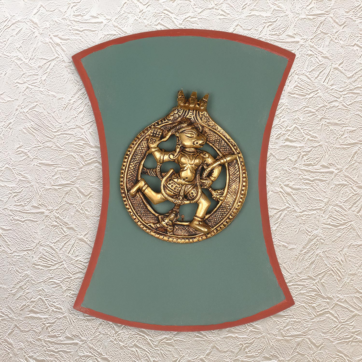 Lord Hanuman in Brass • 9.75" Wooden Wall Frame • Spiritual Home Decor