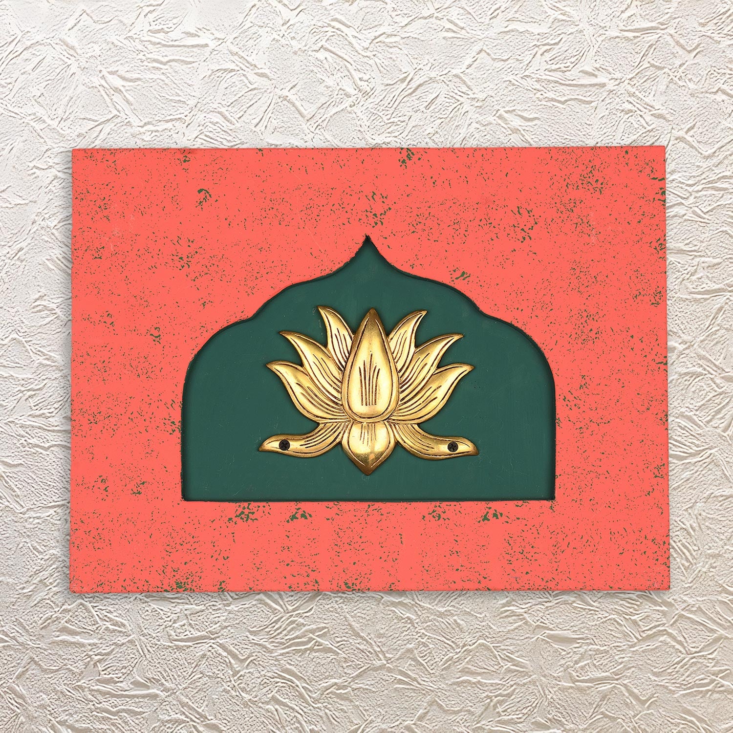Pure Brass Lotus Flower Wooden Wall Frame - Traditional Decor : 12 Inch