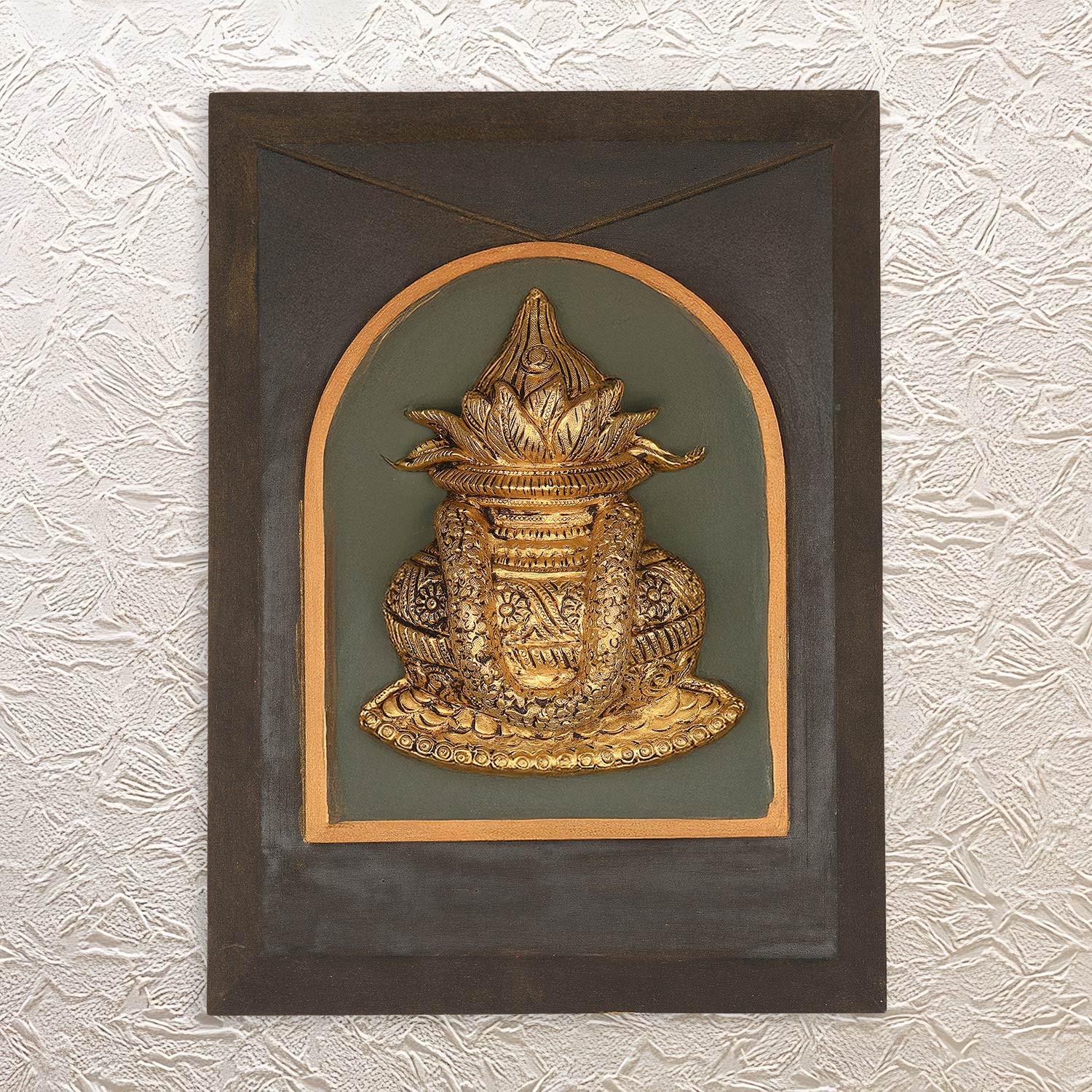 Wall Frame Coconut Kalash Brass Design 15"• Elegant Decor for Festive Vibes