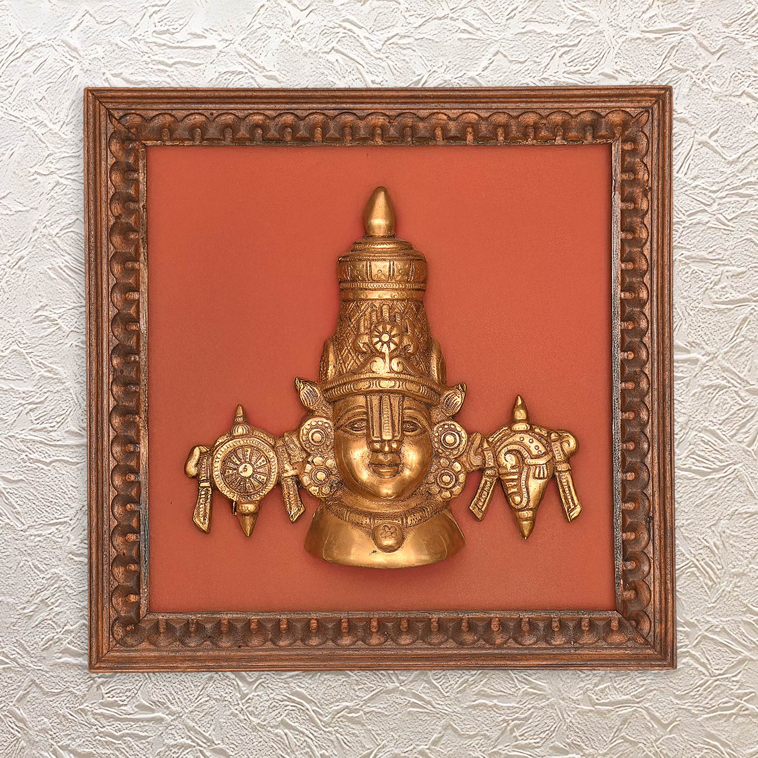 Wall Frame of Lord Balaji – 12" Brass Idol Hanging in Decorative Wooden Art