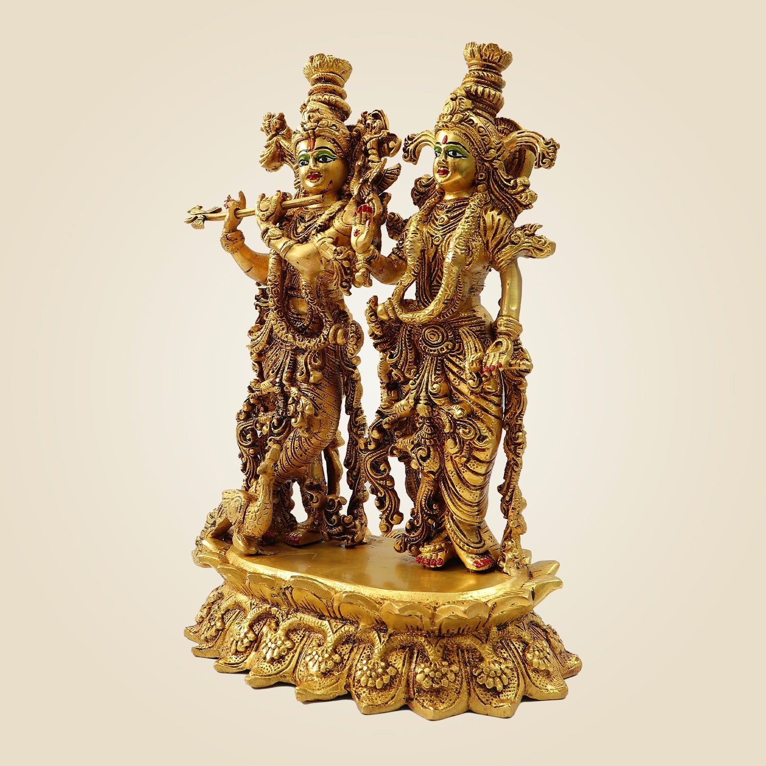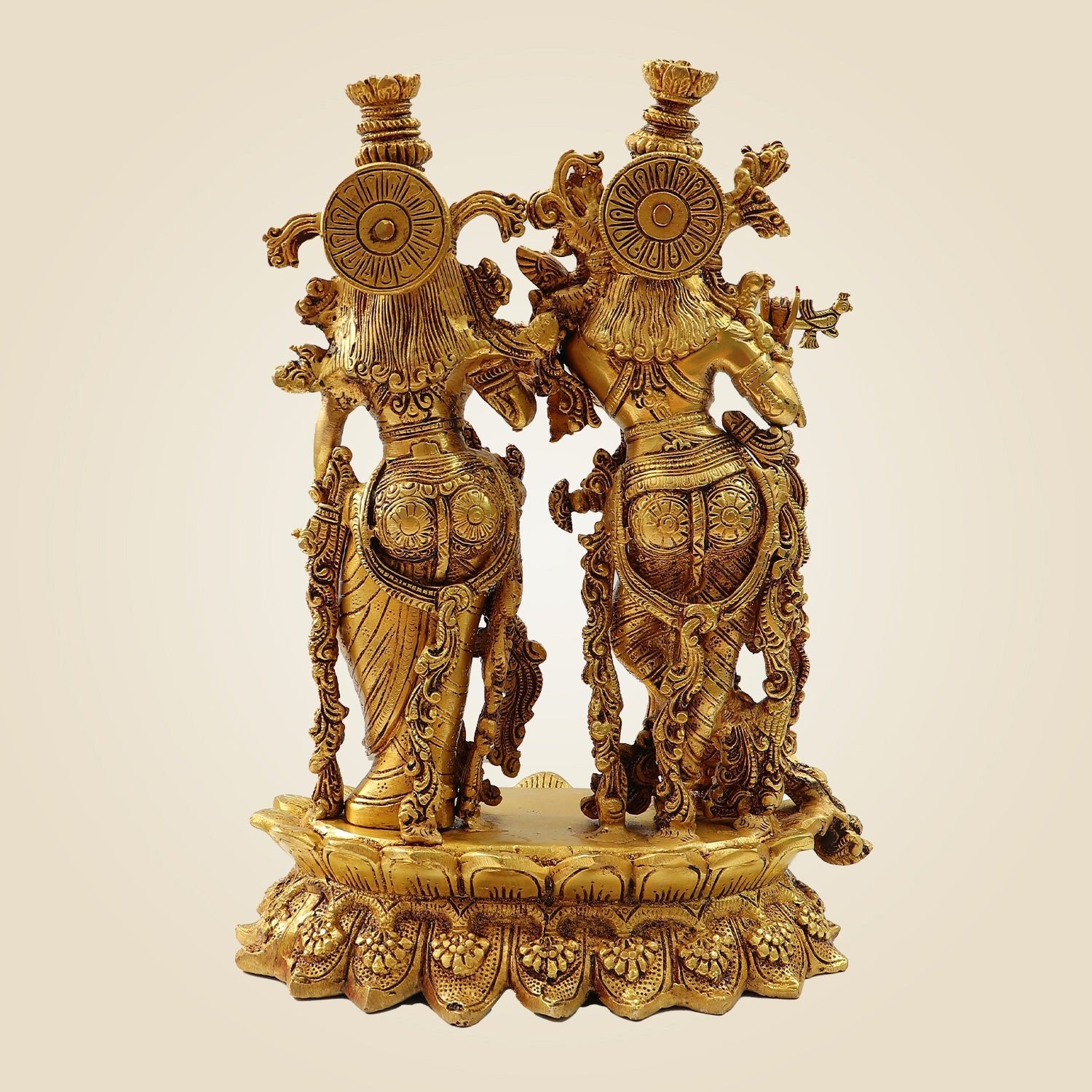 South Indian Style Radha Krishna Brass Idol with Peacock – Divine Décor Statue 13.5"