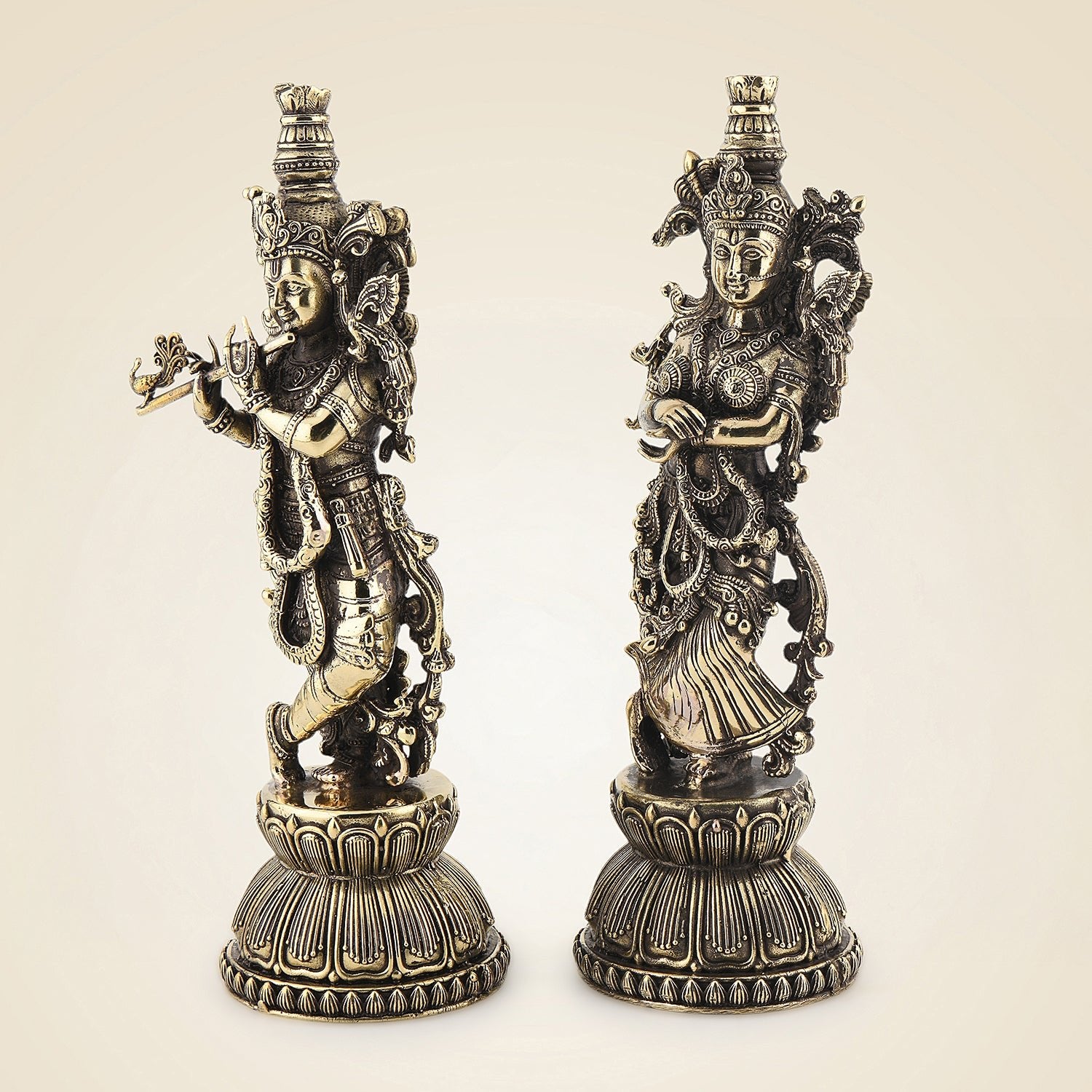 Superfine Radha Krishna Brass Idol Pair – Premium Handcrafted Statue 8.75"