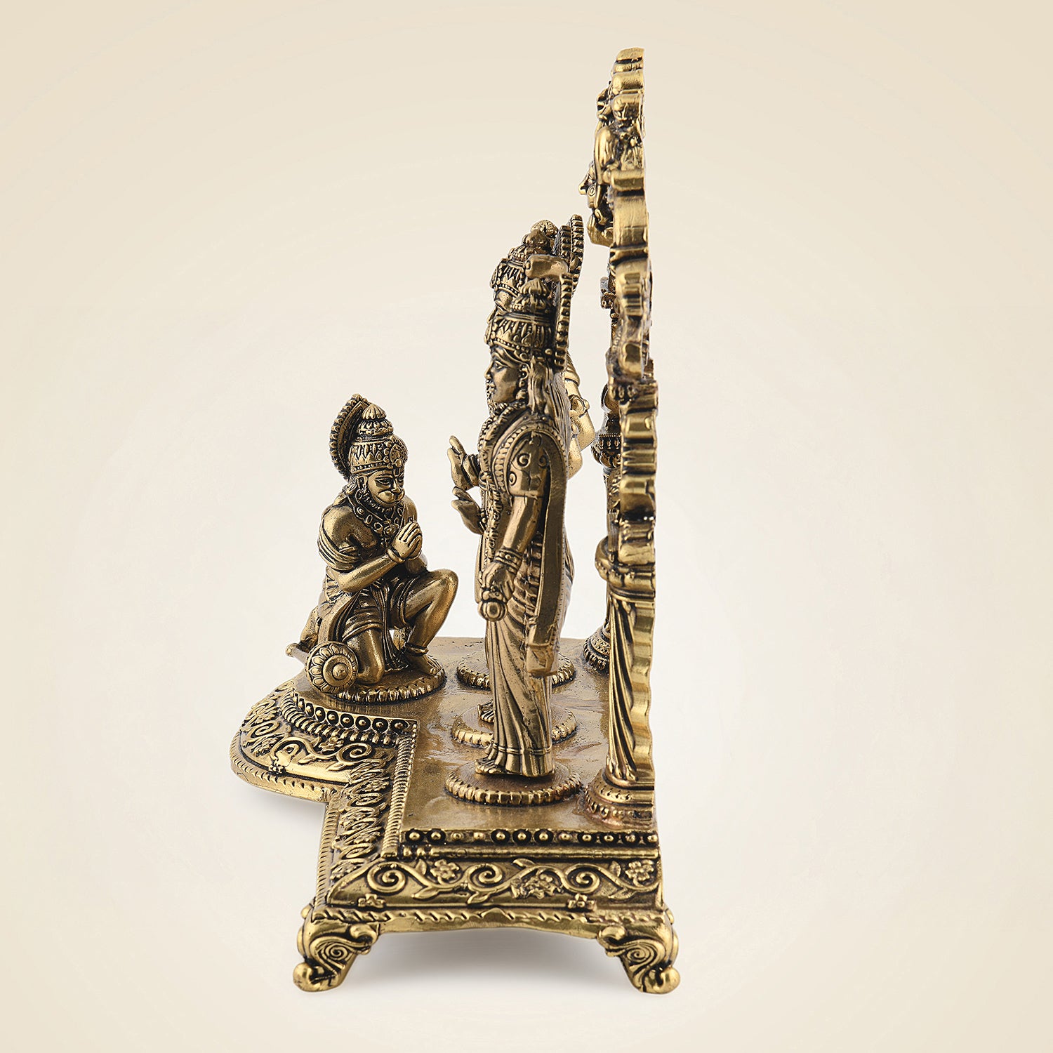 This handcrafted 4 inch Brass Ram Darbar Idol is a beautiful statue that brings divine energy and positive vibes into any space. Crafted with intricate carvings, it showcases Lord Ram along with Sita, Lakshman, and Hanuman in a divine form. Worshipping them together is believed to bring peace, prosperity, and protection.