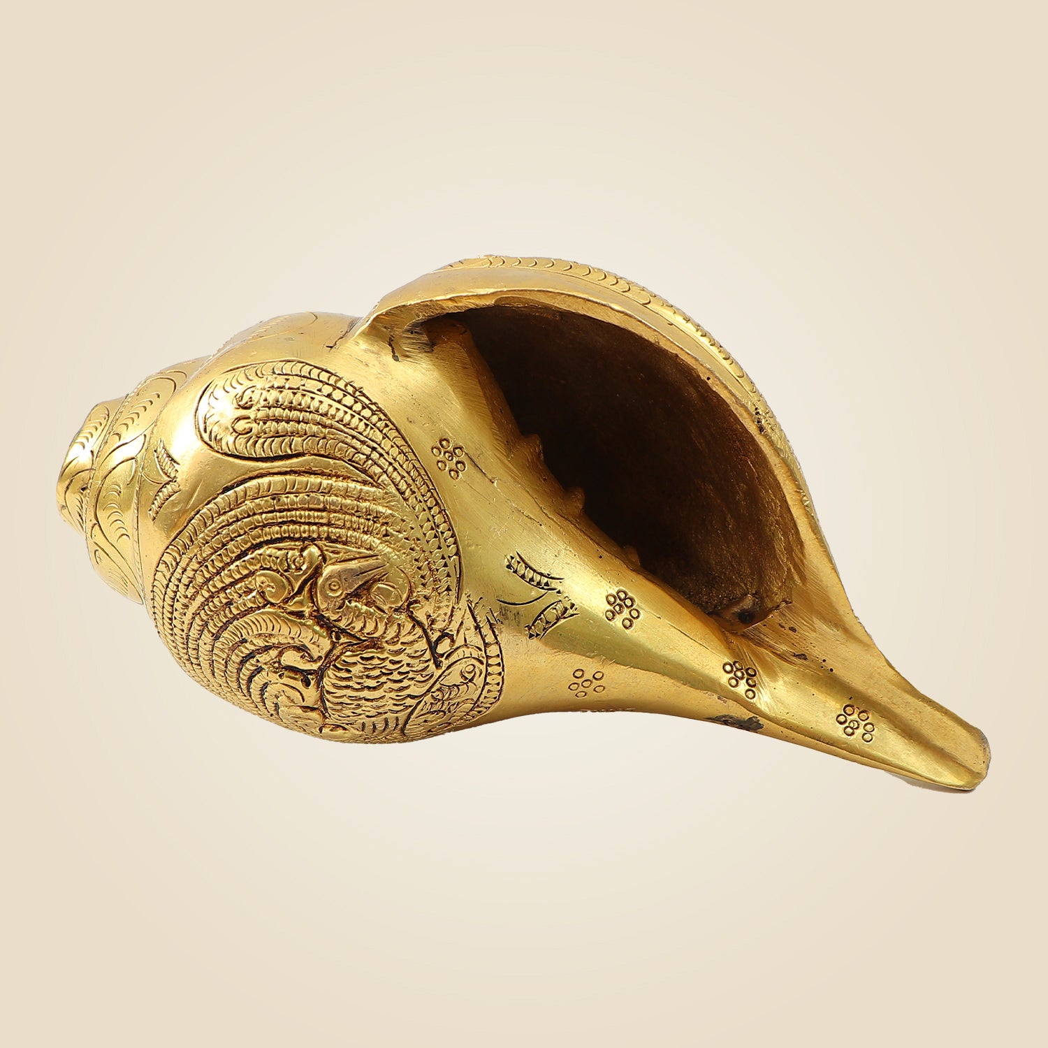 Made from pure brass, it enhances the spiritual ambiance of your home, office, or temple, it also serves as a stunning decorative piece that complements any sacred space. Ideal for gifting on religious occasions, this shankh combines tradition with elegance. This shankh sound will fill your surroundings with peace and positivity.