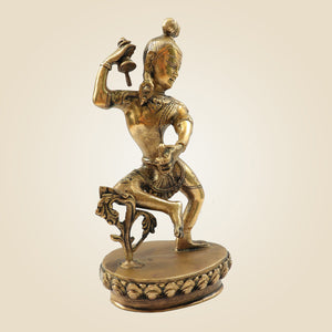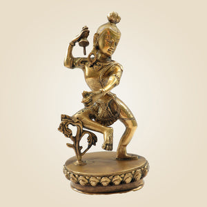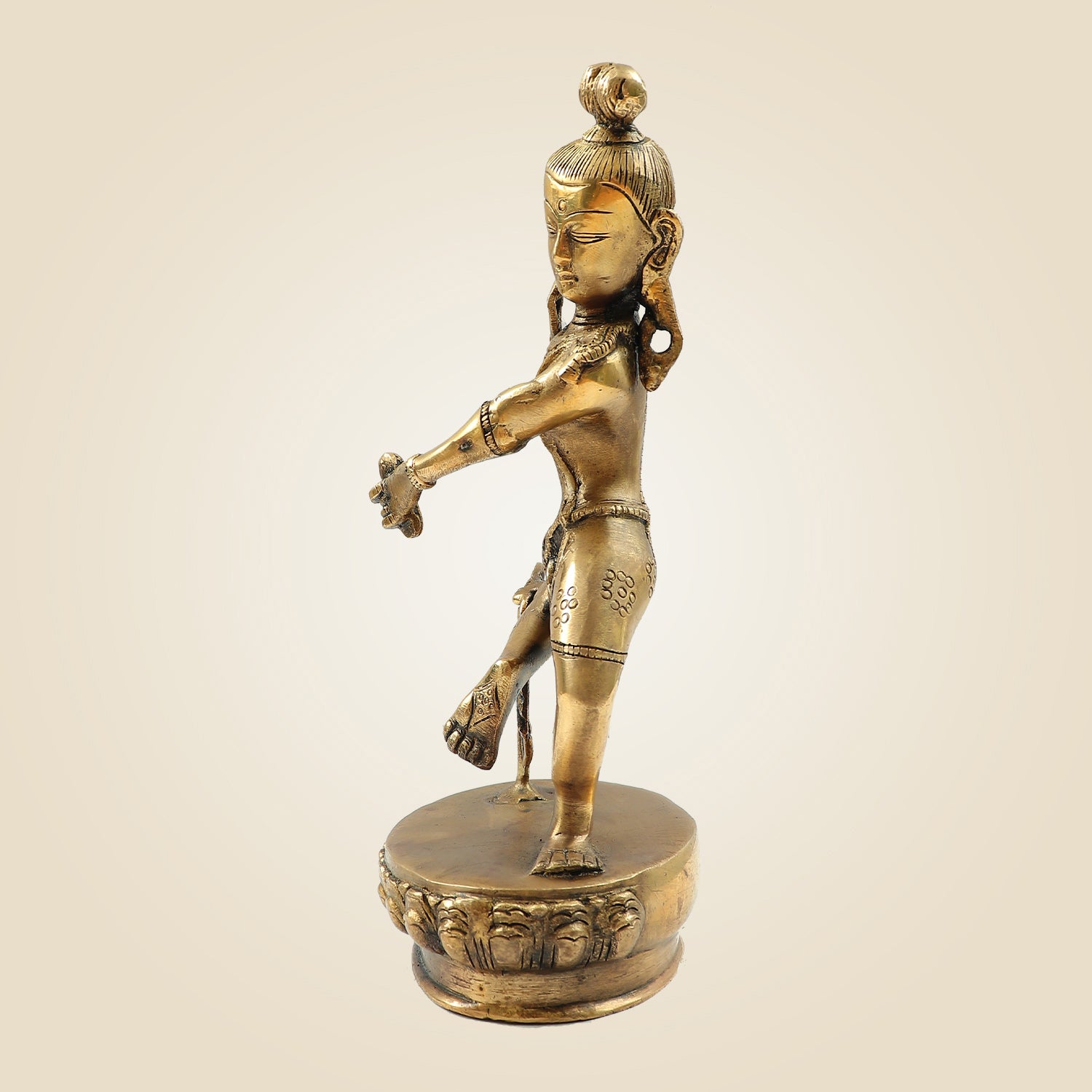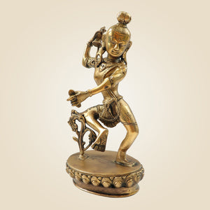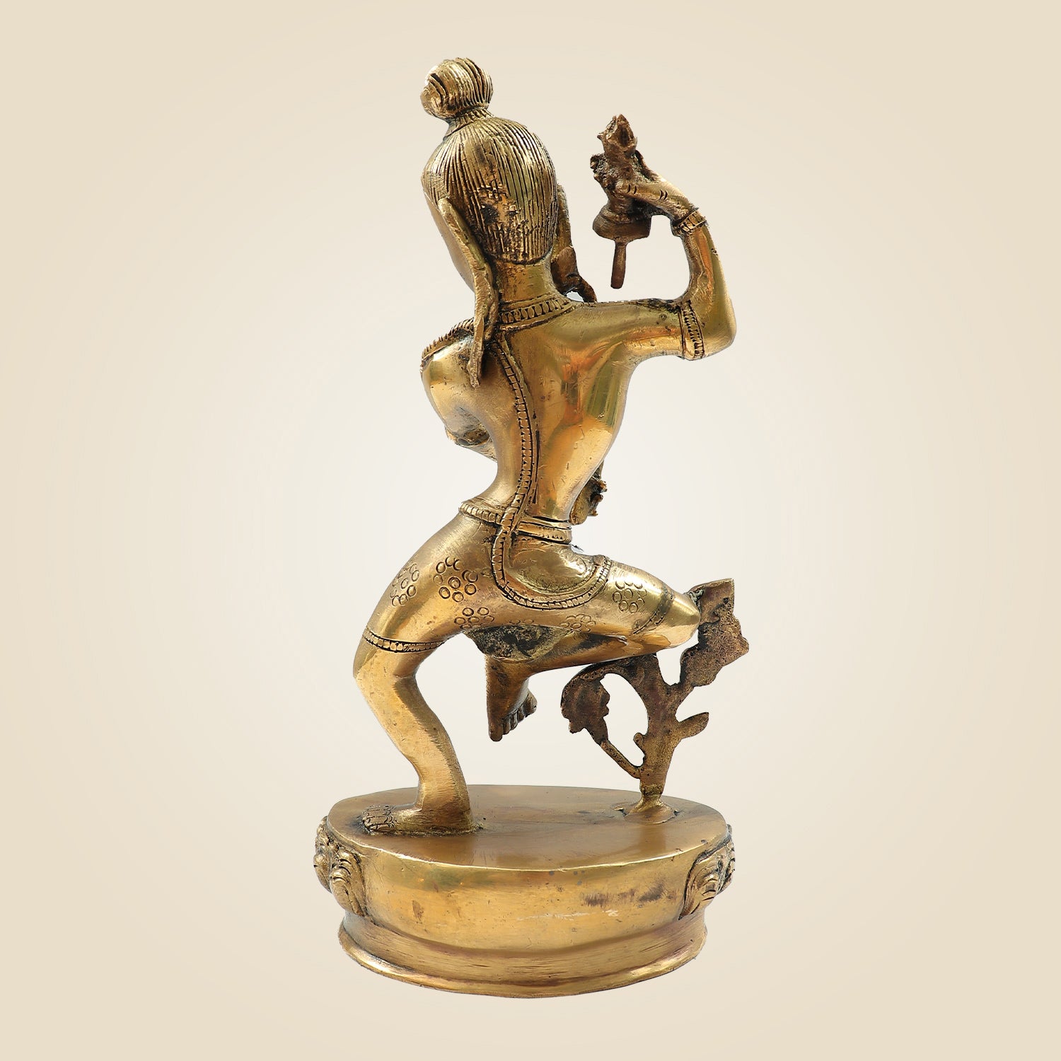 Celebrate the cosmic rhythm of creation and destruction with this 9.25-inch Brass Nepalese Style Dancing Shiva Idol, a representation of Lord Nataraja, the dynamic form of Shiva in his celestial dance. Handmade in the traditional Nepalese art style, this sculpture captures Shiva mid-movement, symbolizing the eternal cycle of life, death, and rebirth. His dance, the Tandava, is said to balance the energies of the universe.