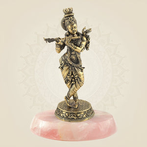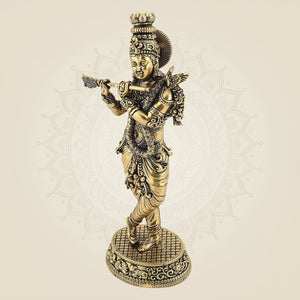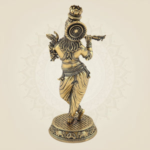 Bring home a charming yet gracious Brass Lord Krishna playing flute idol. Measuring 6 inches, this idol is a handcrafted statue made using the premium quality of brass. Each of the details is very minute in this murti, making it look extremely beautiful. Looking at the posture and expressions of Lord Krishna, you will feel calmness and peace. This idol will be the most thoughtful and spiritual gift option as well for various occasions.