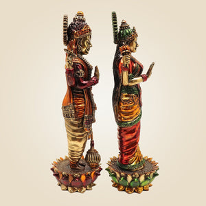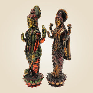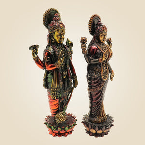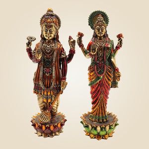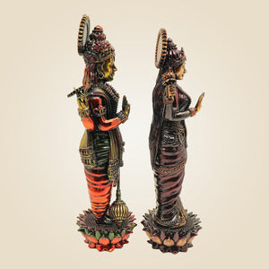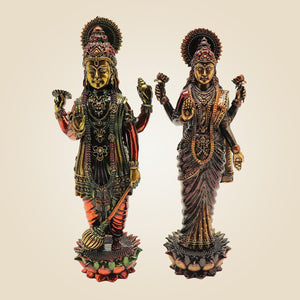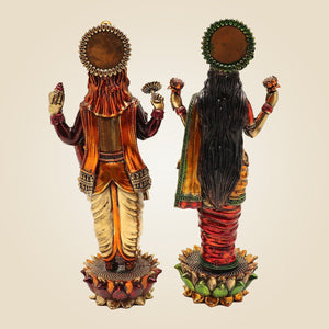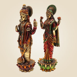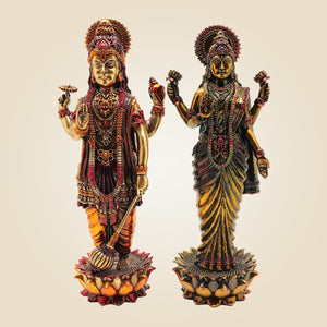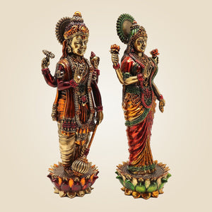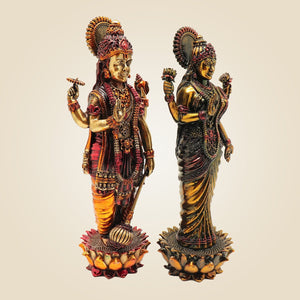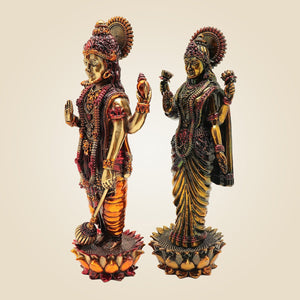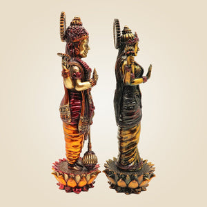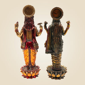 Premium quality brass is used to make the standing Vishnu Lakshmi Idol; therefore, it will be a timeless spiritual murti added to any home. Those who are devotees of Vishnu Ji and Lakshmi Ji should place this idol in their home temple and offer prayers every morning and evening to receive the blessings of these gods. Whether you want to include it in your everyday Pooja rituals or on festivals like Janmashtami, or want to gift it to your friends and family, it is the perfect choice.