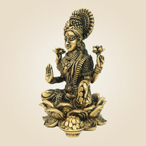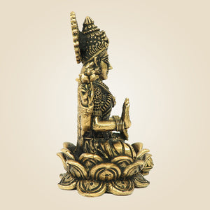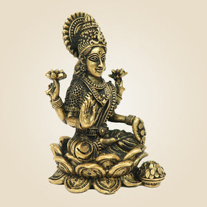 Welcome prosperity and positivity to your life by bringing home the Goddess Lakshmi bronze Idol. Measuring 3 inches, this idol of Goddess Lakshmi is going to open doors to the feminine energy and blessings in your life and home. Goddess Lakshmi is worshipped by devotees for abundance, wealth, and prosperity. So, when one brings home this idol, they will also bring along the blessings of Laxmi Ji, and they will be able to see magical changes in their life.