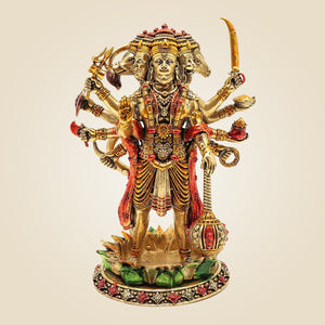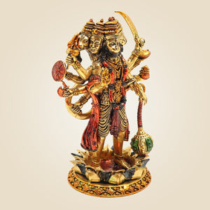 5" Brass Panchmukhi Hanuman Idol – Ten-Armed Superfine Standing Statue
