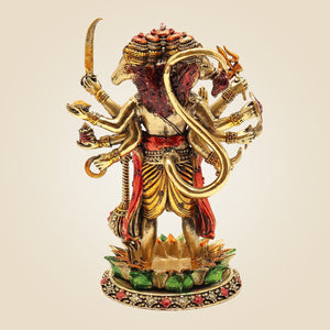Worshipping Lord Hanuman in his Panchmukhi form is believed to offer strong protection against evil forces, grant mental clarity, and bring unwavering strength, devotion, and success. Intended to be both lightweight and compact, it fits perfectly for daily puja rituals, office desks, and any spiritual corner of your home. Crafted with antique-style and superfine detailing, this idol is made of pure brass, giving it a rich, timeless finish that enhances your décor as well as making it an excellent gift. Bring it home today and invite the fearless strength of Lord Hanuman into your life.