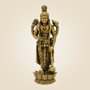 Make your home a graceful space and protect it from negative energies by placing the bronze Lord Vishnu idol measuring 5 inches. In this idol, Lord Vishnu is standing on a lotus, which makes this idol even more elegant and divine. Lord Vishnu is known as the creator of the universe, and people place his Idol in the space that opens doors to his divine blessings. The bronze-made idol is going to be a timeless addition to your space and is not only perfect for your personal use but also to be used as a gift. It will make the most spiritual gift for housewarmings, weddings, and religious ceremonies. Its perfect size makes it ideal for multiple spaces at your home, office, or workplace. It is not too big and not too compact. Place it in your home Temple or sacred section of the house and make your space filled with positive energy.
