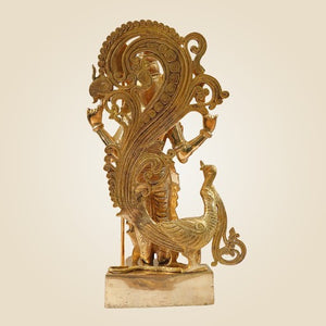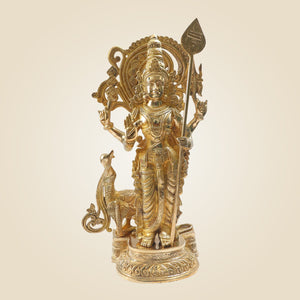 Big Murugan Idol 20"- Brass Kartikeya Murti with Peacock Vahan for Temple & Home