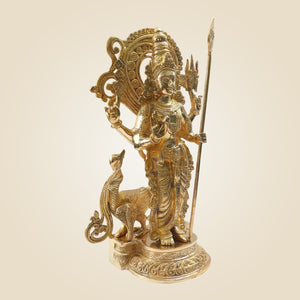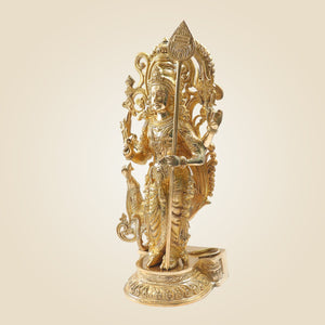 Open doors to the divine energy and blessings of Lord Murugan or Kartikey by placing the big Murugan Idol measuring 20 inches. It is the perfect spiritual yet decorative murti for all spaces, including homes or offices. As it is a large-sized murti, therefore, it is perfect to be used as the centrepiece in the living room of the home or to be placed in the spacious home temples. Furthermore, it can also be kept at the entrance of the house or offices. The brass construction of the idol makes it durable and long-lasting.