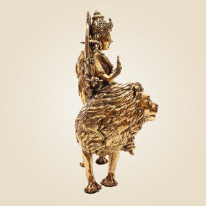 Brass Durga Mata Idol 5" - Lightweight Handcrafted Murti with Lion Base