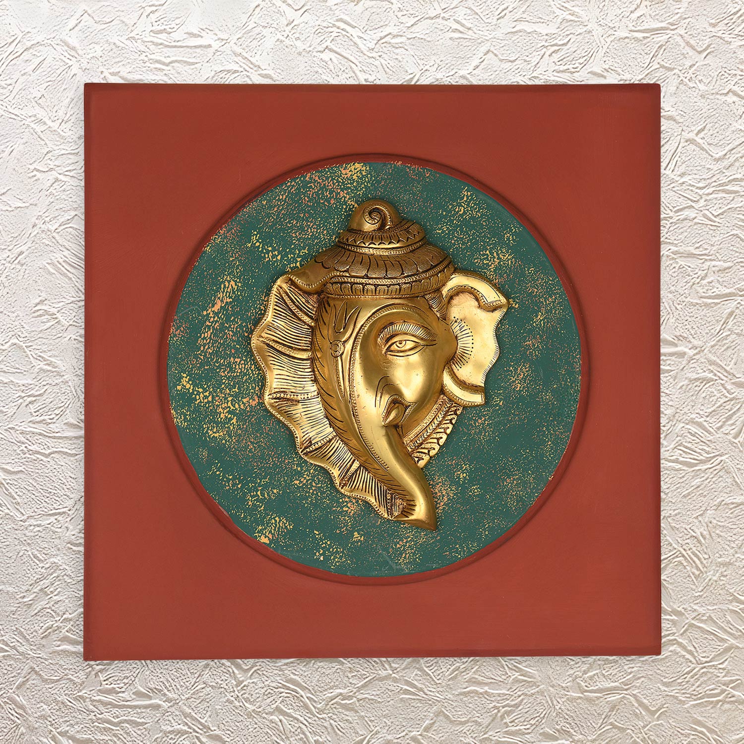 Brass Ganesha Face Mask - 16" Wall Frame • Divine Item for Home Decor