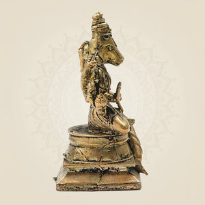 The beautifully crafted 3-inch bronze Varahi statue is a Panchaloha Idol. This statue represents the powerful goddess Varahi. She is known to protect her devotees from the negative and evil influences. Pure bronze used to construct this Idol makes it look extremely traditional yet auspicious. Furthermore, this Idol features goddess Varahi with 8 arms. The beautiful detailing makes it perfect for not just personal use but for gifting as well.