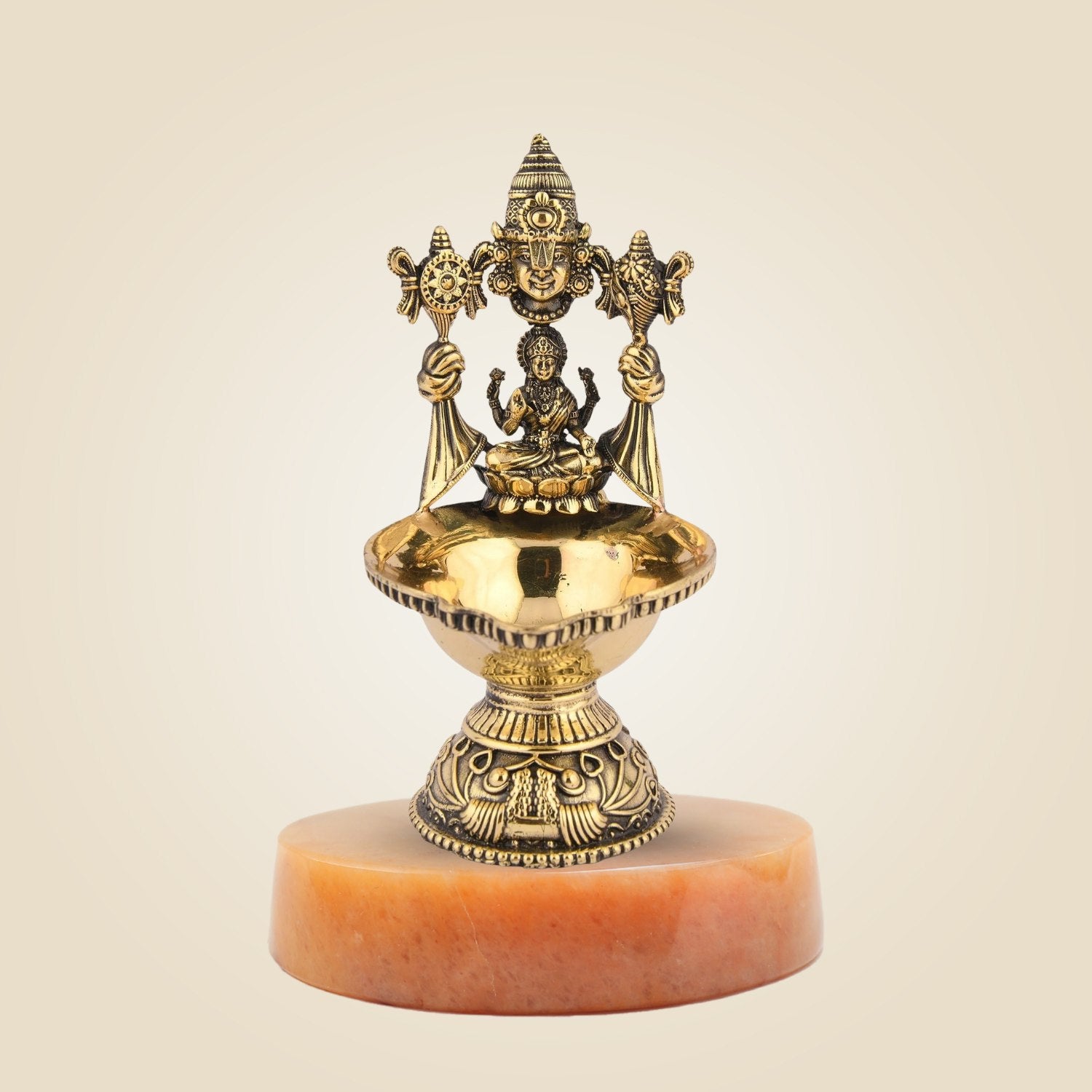 Pure Brass Balaji with Laxmi Diya Handcrafted Artisan Idol – 4.25" Decor
