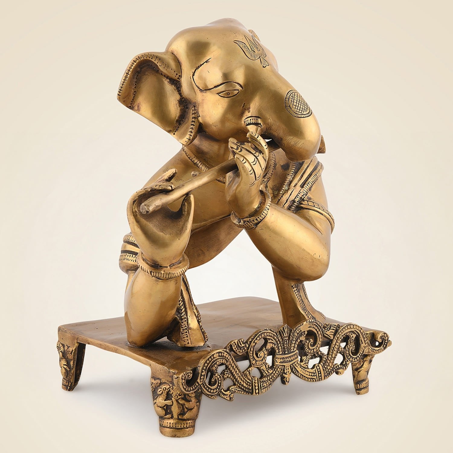 11.75" Ganesha Playing Flute Brass Idol – Hindu Sculpture