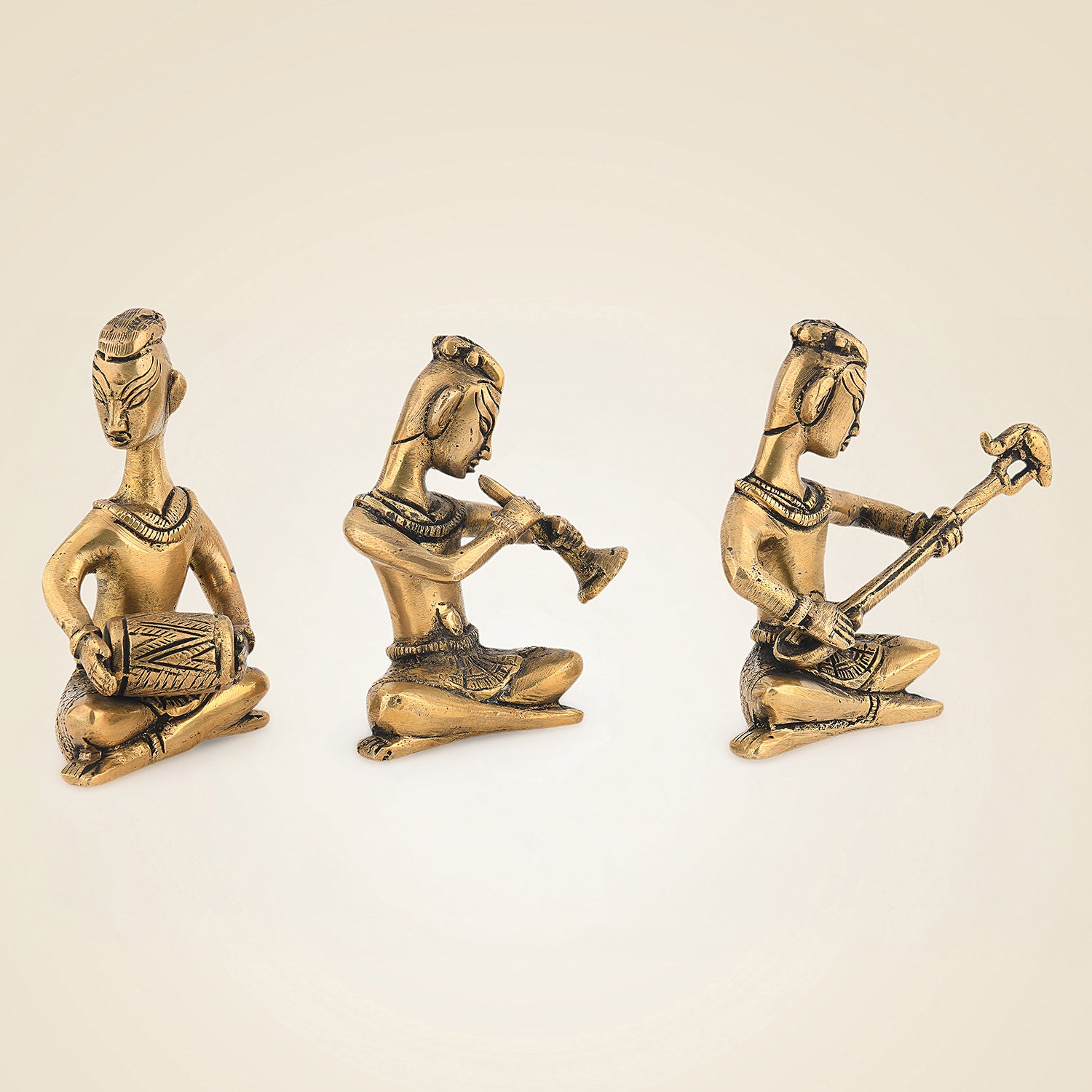 Brass Musician Figurines Set of 3 – Handcrafted Showpieces for Home Decor 4.25