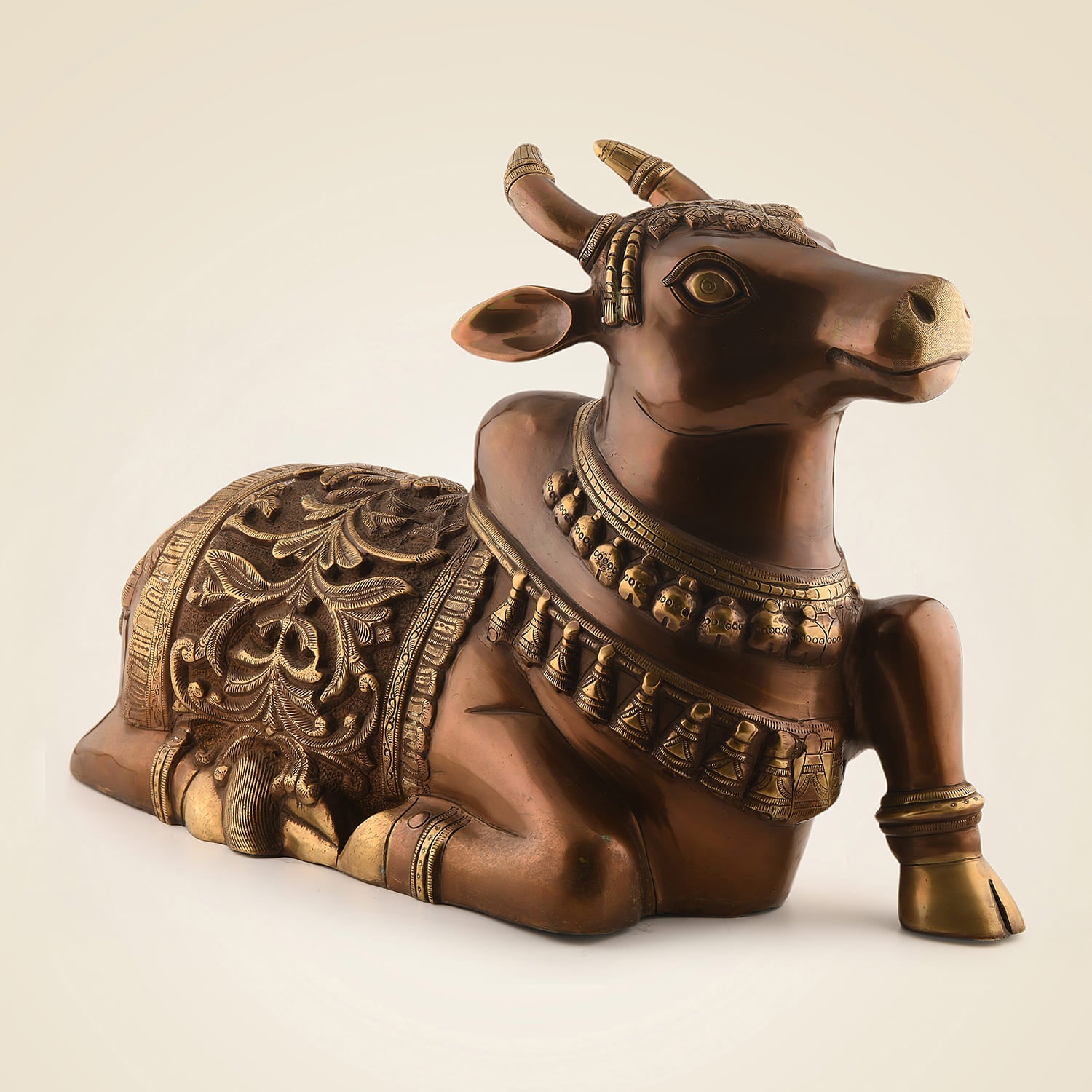 Brass Nandi Idol with Intricate Carving 13.5" – Handcrafted traditional Statue