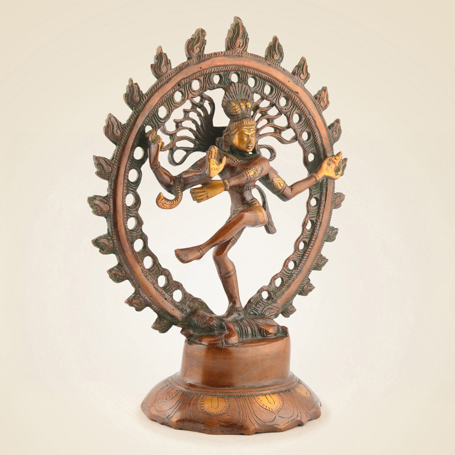 14″ Pure Brass Nataraja Idol – Dancing Shiva Statue with Butter Polish Finish