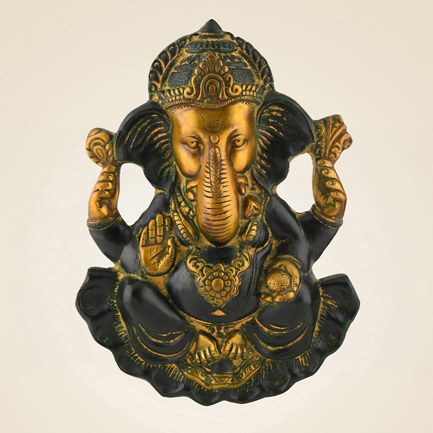 10.5″ Multicolor Brass Ganesha Wall Hanging – Handcrafted Decorative Idol